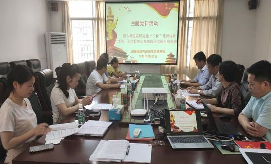 2021年5月12日,继续教育与培训学院(吉安电大)党支部围绕“深入推进基层党建‘三化’建设提质增效,为学校事业发展提供坚强组织保障”主题,组织全体党员开展“主题党日”活动。院长贺晓斌,副院长万晓兵,支部书记、副院长王志民出席。活动由王志民主持。