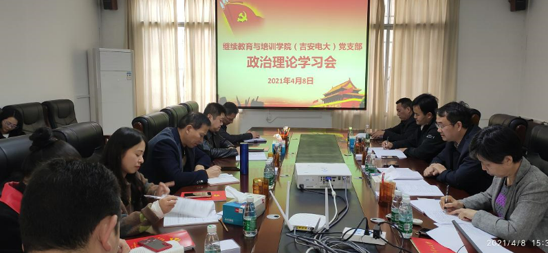 2021年4月8日下午,继续教育与培训学院(吉安电大)党支部组织全体党员和全院职工开展政治理论集体学习。院长贺晓斌,副院长万晓兵,支部书记、副院长王志民出席。学习会由王志民主持。